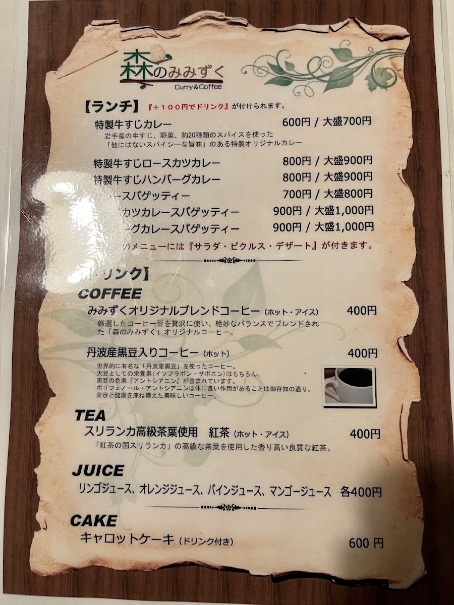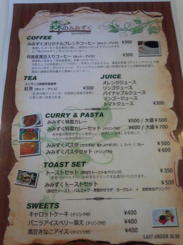 Mori-no-Mimizuku Menu